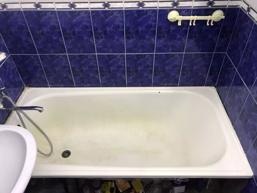Заказывали эмалировку ванны кистью в Гомеле, живём на улице Советской. Ванна была старая — эмаль потемнела, появились сколы и мелкие трещины.